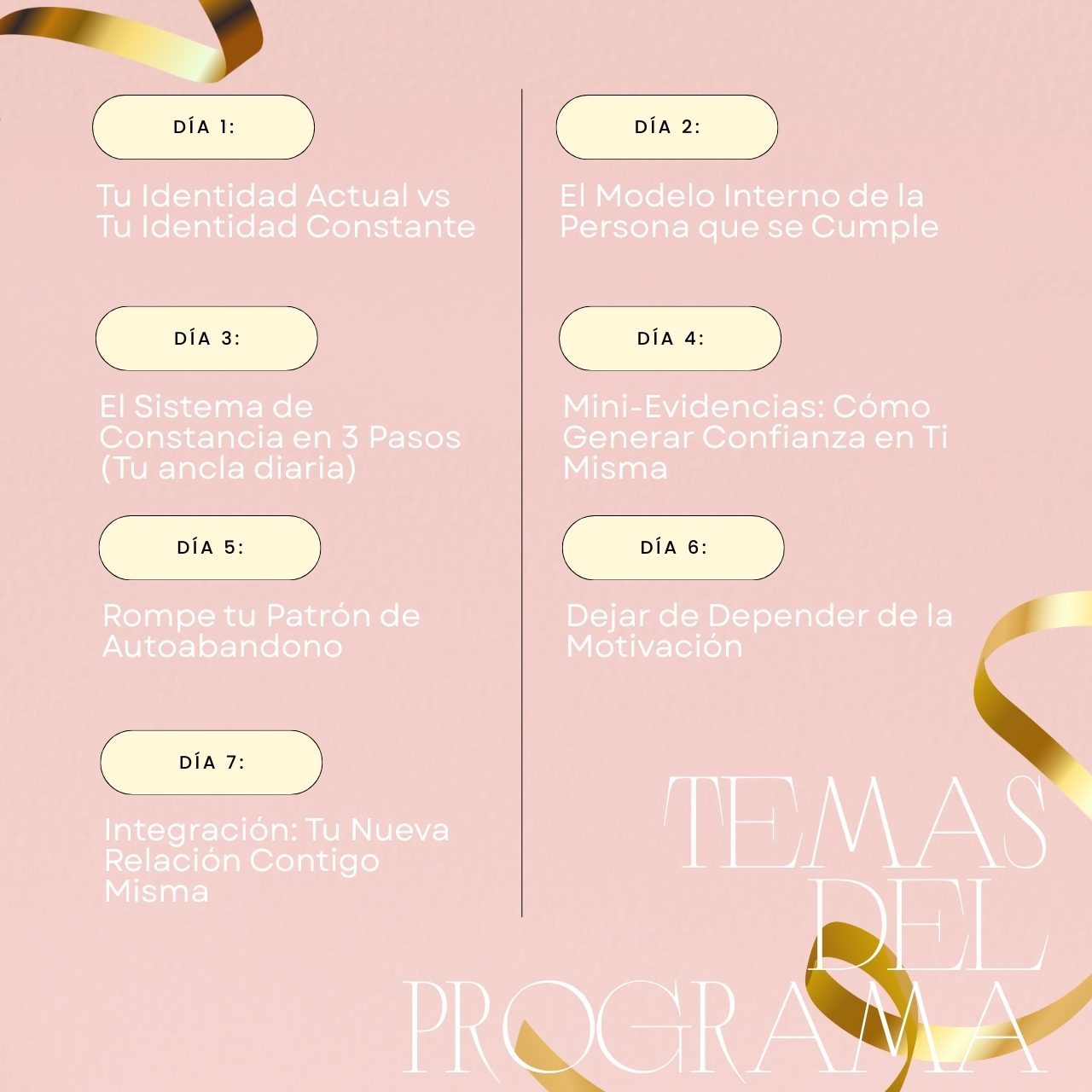 →Se compone de una metodología de 6 pasos en donde te guía desde el autoconocimiento, la planeación estratégica y hasta el sentido de vivir cada día con gozo.