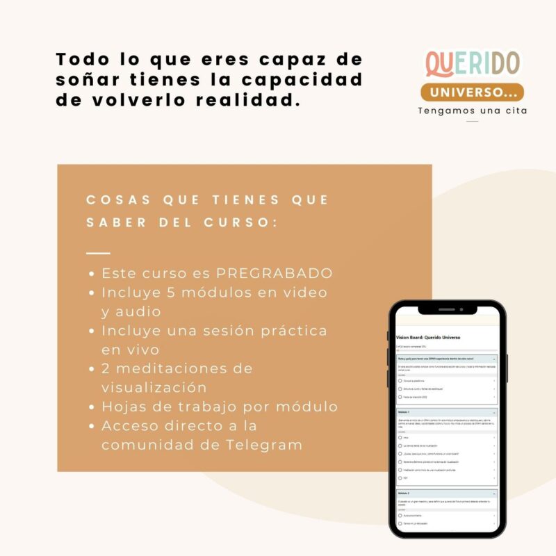 Contenido del curso digital* Vision Board “Querido universo, tengamos una cita”: